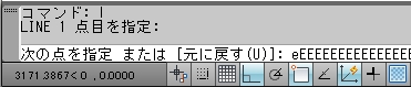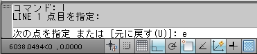 例えば線分コマンドを実行して、線の終点を端点で取りたい場合でも、「Shift」より先に「e」を押すとこうなります。
