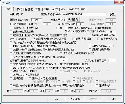 私もJw_CADの設定画面を見ると、何だか色々設定できそうだけど分からない状態になります。