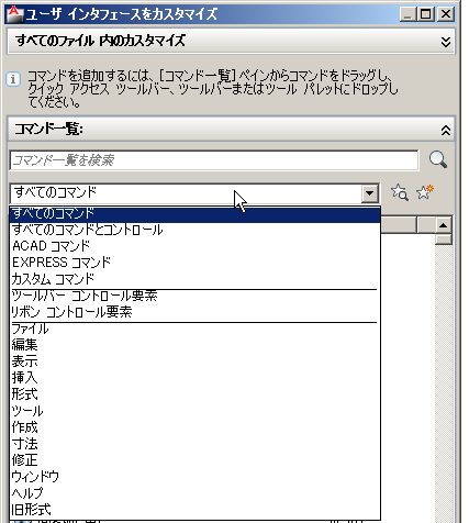 現在は全部のコマンドが表示されている状態ですが、それはここで「すべてのコマンド」が選択されているから。