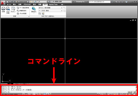で、実際にフルコマンド入力をするのタイミングがどうなのかというと、コマンドラインに「コマンド:」と表示されている時です。