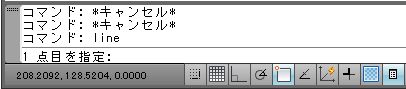 このコマンドラインには、今までどんな操作をしてきたかとか、今どんな状況になっているのかなどが表示されます。