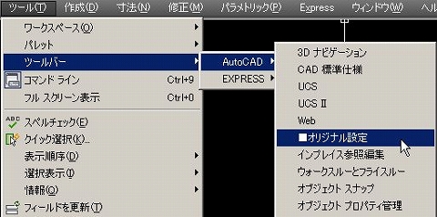 ただしこれだけでは、先程作成したツールバーがオートキャド(AutoCAD)の画面上に表示されません。