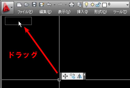 この状態でクリックしたままマウスを移動させると、ツールバーを移動させることが出来ます。